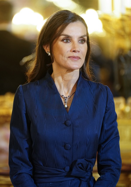 La reine Letizia d'Espagne lors de la réception annuelle avec les ambassadeurs au palais royal à Madrid. Le 31 janvier 2024 King Felipe VI and Queen Letizia host the annual Foreign Ambassadors reception at the Royals Palace. Madrid - January 31, 2024