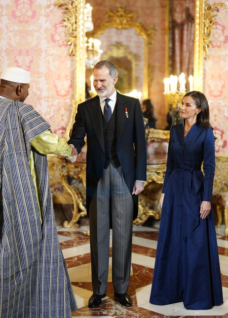 Le roi Felipe VI et la reine Letizia d'Espagne lors de la réception annuelle avec les ambassadeurs au palais royal à Madrid