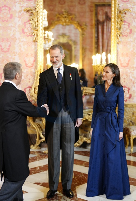 Król Hiszpanii Filip VI i królowa Letycja podczas corocznego przyjęcia z ambasadorami w Pałacu Królewskim w Madrycie”