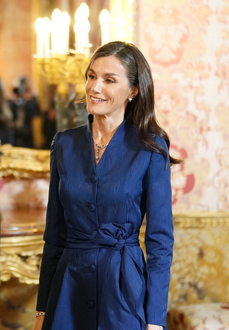 La reine Letizia d'Espagne lors de la réception annuelle avec les ambassadeurs au palais royal à Madrid. Le 31 janvier 2024 King Felipe VI and Queen Letizia host the annual Foreign Ambassadors reception at the Royals Palace. Madrid - January 31, 2024