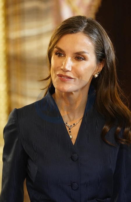 La reine Letizia d'Espagne lors de la réception annuelle avec les ambassadeurs au palais royal à Madrid. Le 31 janvier 2024 King Felipe VI and Queen Letizia host the annual Foreign Ambassadors reception at the Royals Palace. Madrid - January 31, 2024