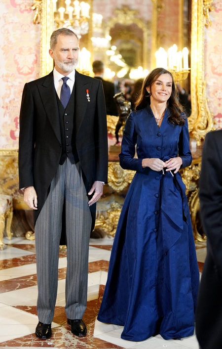 Le roi Felipe VI et la reine Letizia d'Espagne lors de la réception annuelle avec les ambassadeurs au palais royal à Madrid