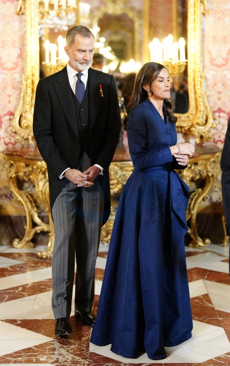 Król Hiszpanii Filip VI i królowa Letycja podczas corocznego przyjęcia z ambasadorami w Pałacu Królewskim w Madrycie”