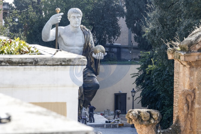 Rome, Musei Capitolini. - The colossus of Emperor Constantine was reconstructed by Fondazione Prada, Factum Foundation and the Capitoline museum. The statue, twelve meters high, arrived from Milan: the final installation work is underway and it will then be exhibited to the public next to the original fragments, ten in total. These include the face, the hand with the index finger also pointing towards the sky, the emperor's foot, the elbow. From these we started to create the reproduction of the statue which is a facsimile in polyurethane treated with layers of resin. But the most surprising thing is to discover that it was made with 3D printing.The reconstruction is a hypothesis by the historian and archaeologist Salvatore Settis, curator of the Recycling Beauty exhibition presented last year at the Prada Foundation in Milan, while the recomposition is by Factum Foundation for Digital Technology in Preservation. 01/02/2024, Credit:Riccardo De Luca / Avalon