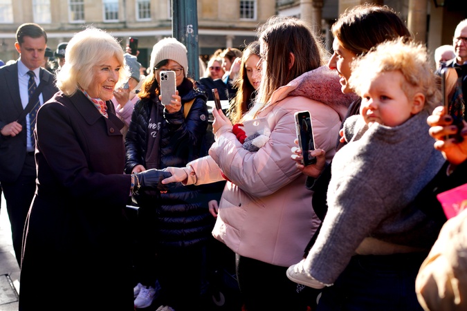 Queen Camilla meeting members of the public ahead of attending a Service of Celebration at Bath Abbey as she carry out engagements celebrating the 850th anniversary of St John's Foundation in Bath., Credit:Ben Birchall / Avalon