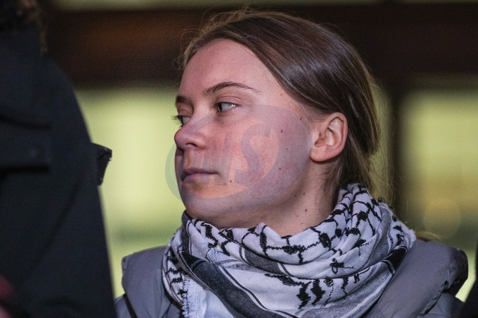 Greta Thunberg makes statement after 1st day of court case, London, UK