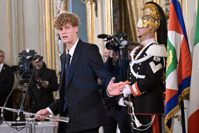 Italian President Sergio Mattarella meets the Italian tennis team, winners of the 2023 Davis Cup, at the Palazzo del Quirinale in Rome, Italy, February 1, 2024. Pictured Jannik Sinner, the first Italian winner of Australian Open 2024, Credit:Maria Laura Antonelli / Avalon