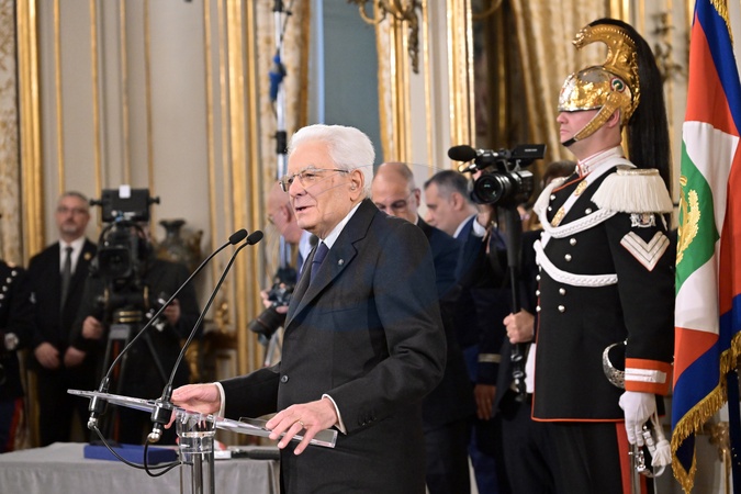 Italian President Sergio Mattarella meets the Italian tennis team, winners of the 2023 Davis Cup, at the Palazzo del Quirinale in Rome, Italy, February 1, 2024. Pictured Sergio Mattarella, Credit:Maria Laura Antonelli / Avalon