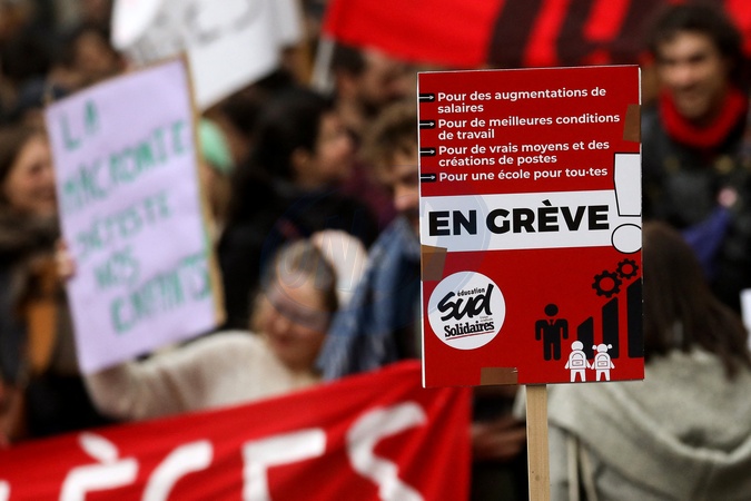 Nauczyciele biorą udział w demonstracji zorganizowanej przez francuskie związki oświatowe na rzecz podniesienia wynagrodzeń i warunków pracy w Paryżu.