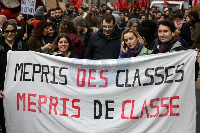 Des enseignants et membres de l'éducation nationale participent à un manifestation organisé par les syndicats de l'enseignement français pour la revalorisation des salaires et des conditions de travaii à Paris