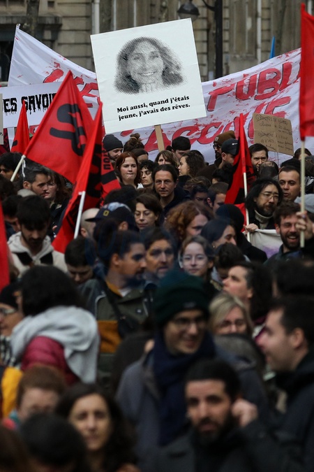 Des enseignants et membres de l'éducation nationale participent à un manifestation organisé par les syndicats de l'enseignement français pour la revalorisation des salaires et des conditions de travaii à Paris
