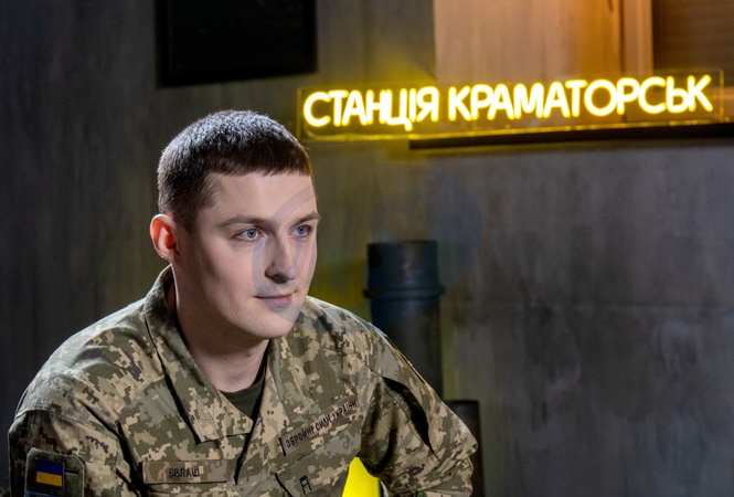 KYIV, UKRAINE - JANUARY 29, 2024 - Head of the press service of the Eastern Group of the Armed Forces of Ukraine Illia Yevlash gives an interview during the recording of the program "Kramatorsk Station", a joint project between Ukrinform and the Center for Countering Disinformation, Kyiv, capital of Ukraine., Credit:Pavlo_Bagmut / Avalon