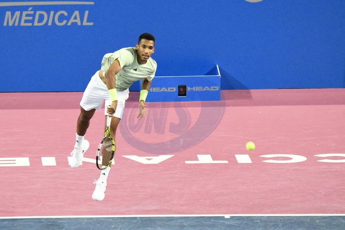 MONTPELLIER, FRANCE - FEBRUARY 1 : Felix AUGER-ALIASSIME (CAN) during the 2nd round of the ATP 250 Open Sud de France tournament vs. Arthur CAZAUX (FRA) in Montpellier, France on February 1st, 2024.
