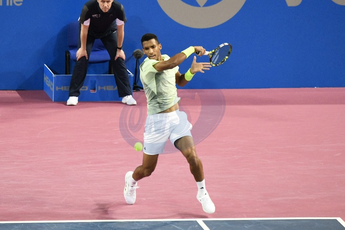 MONTPELLIER, FRANCE - FEBRUARY 1 : Felix AUGER-ALIASSIME (CAN) during the 2nd round of the ATP 250 Open Sud de France tournament vs. Arthur CAZAUX (FRA) in Montpellier, France on February 1st, 2024.