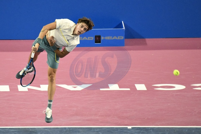 MONTPELLIER, FRANCE - FEBRUARY 1 : Arthur CAZAUX (FRA) during the 2nd round of the ATP 250 Open Sud de France tournament vs. Felix AUGER-ALIASSIME (CAN) in Montpellier, France on February 1st, 2024.
