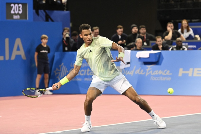 MONTPELLIER, FRANCE - FEBRUARY 1 : Felix AUGER-ALIASSIME (CAN) during the 2nd round of the ATP 250 Open Sud de France tournament vs. Arthur CAZAUX (FRA) in Montpellier, France on February 1st, 2024.