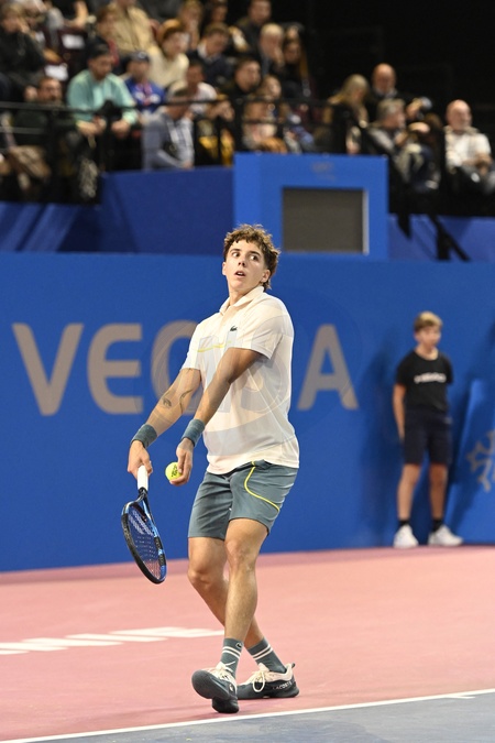 MONTPELLIER, FRANCE - FEBRUARY 1 : Arthur CAZAUX (FRA) during the 2nd round of the ATP 250 Open Sud de France tournament vs. Felix AUGER-ALIASSIME (CAN) in Montpellier, France on February 1st, 2024.