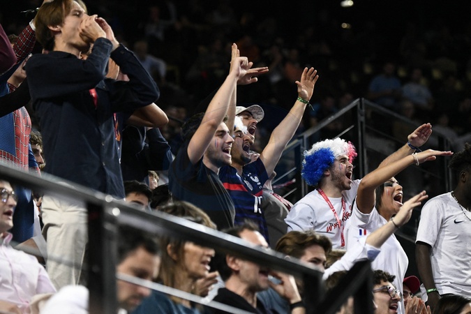 MONTPELLIER, FRANCE - FEBRUARY 1 : Fans support Arthur CAZAUX (FRA) during the 2nd round of the ATP 250 Open Sud de France tournament vs. Felix AUGER-ALIASSIME (CAN) in Montpellier, France on February 1st, 2024.