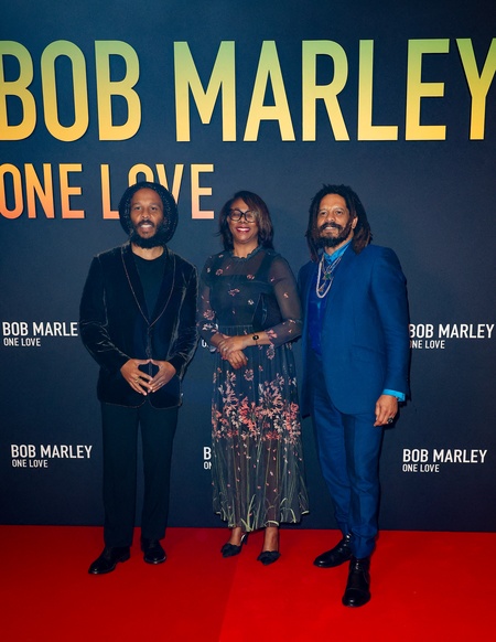 Ziggy Marley, Symone Betton Nayo et Rohan Marley - Première du film "Bob Marley One Love" au Grand Rex à Paris le 1 fevrier 2024. © Coadic Guirec/Bestimage Premiere of the film "Bob Marley One Love” at the Grand Rex in Paris on February 1, 2024.