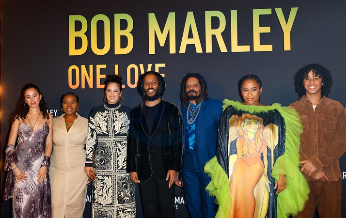 Judah Victoria Marley, Justice Marley, Orly Marley, Ziggy Marley, Rohan Marley, Zuri Marley et Gideon Marley - Première du film "Bob Marley One Love" au Grand Rex à Paris le 1 fevrier 2024. © Coadic Guirec/Bestimage Premiere of the film "Bob Marley One Love” at the Grand Rex in Paris on February 1, 2024.