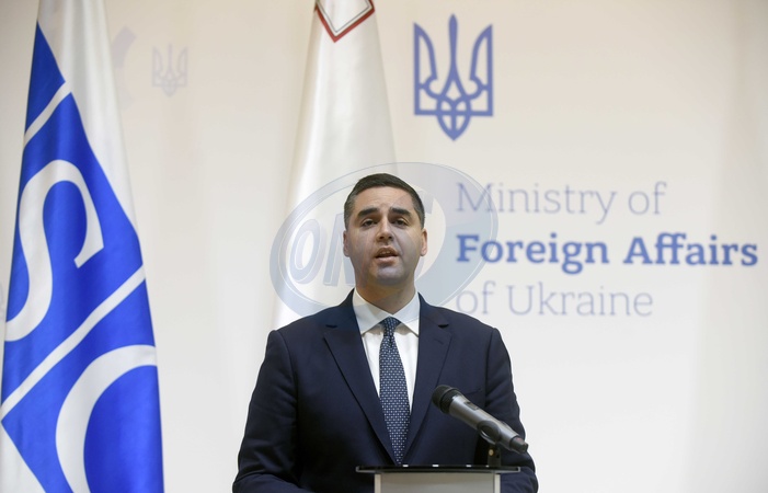 KYIV, UKRAINE - FEBRUARY 2, 2024 - OSCE Chairperson-in-Office, Minister for Foreign and European Affairs and Trade of Malta Ian Borg attends a joint news conference with Minister of Foreign Affairs of Ukraine Dmytro Kuleba, Kyiv, capital of Ukraine., Credit:Kaniuka Ruslan / Avalon