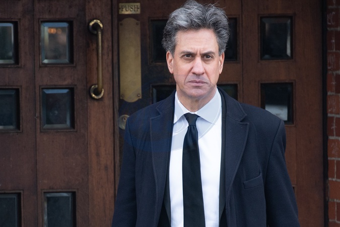 Ed Miliband at Derek Draper's funeral service at Church of St Mary The Virgin, Primrose Hill, London, England, UK on Friday 2 February, 2024., Credit:Justin Ng / Avalon