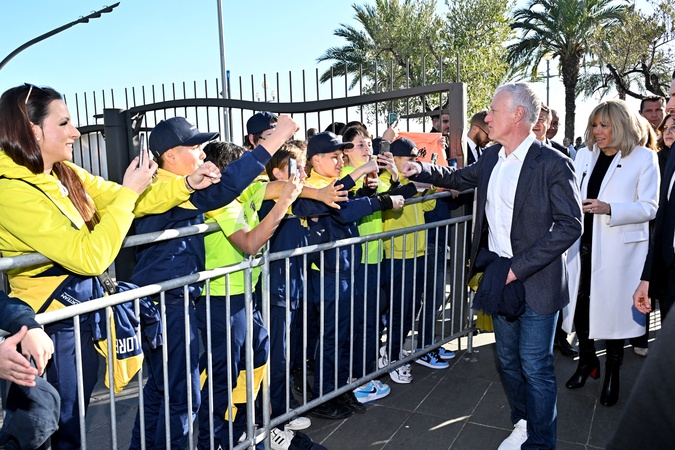 Le sélectionneur de l'équipe de France de football, Didier Deschamps (parrain de l'opération Pièces Jaunes), et la Première dame française, Brigitte Macron (présidente de la Fondation Hôpitaux de Paris-Hôpitaux de France), durant la clôture de l'édition 2024 de la 35eme Opération Pièces Jaunes à Nice, au kiosque à musique du jardin Albert 1er, le 2 février 2024. Cette collecte de fonds "Pièces Jaunes" est destinée à améliorer la vie des enfants hospitalisés. © Bruno Bebert/Bestimage Closing of the ‘Pièces Jaunes' event in Nice, France, le 3 février 2024.
