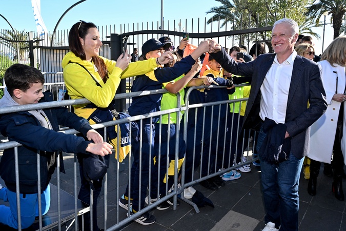 Le sélectionneur de l'équipe de France de football, Didier Deschamps (parrain de l'opération Pièces Jaunes), et la Première dame française, Brigitte Macron (présidente de la Fondation Hôpitaux de Paris-Hôpitaux de France), durant la clôture de l'édition 2024 de la 35eme Opération Pièces Jaunes à Nice, au kiosque à musique du jardin Albert 1er, le 2 février 2024. Cette collecte de fonds "Pièces Jaunes" est destinée à améliorer la vie des enfants hospitalisés. © Bruno Bebert/Bestimage Closing of the ‘Pièces Jaunes' event in Nice, France, le 3 février 2024.