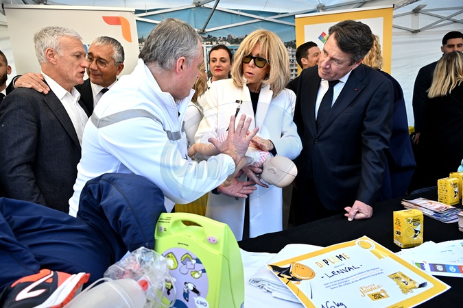 Brigitte Macron et Didier Deschamps lors de la clôture de l’édition 2024 de la 35ème Opération Pièces Jaunes à Nice