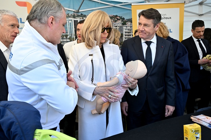 Brigitte Macron et Didier Deschamps lors de la clôture de l’édition 2024 de la 35ème Opération Pièces Jaunes à Nice
