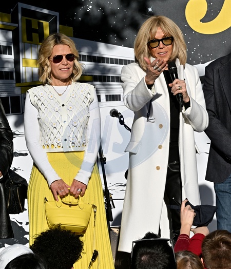 Laura Tenoudji Estrosi et la Première dame française, Brigitte Macron (présidente de la Fondation Hôpitaux de Paris-Hôpitaux de France), durant la clôture de l'édition 2024 de la 35eme Opération Pièces Jaunes à Nice, au kiosque à musique du jardin Albert 1er, le 2 février 2024. Cette collecte de fonds "Pièces Jaunes" est destinée à améliorer la vie des enfants hospitalisés. © Bruno Bebert/Bestimage Closing of the ‘Pièces Jaunes' event in Nice, France, le 3 février 2024.
