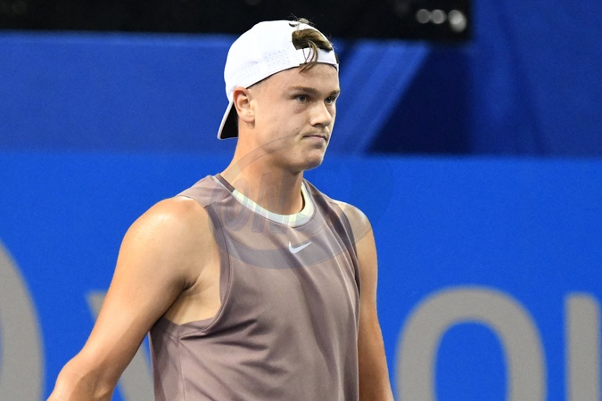 Tournoi de tennis Open Sud de France à Montpellier le 2 février 2024. © Valentina Claret / Panoramic / Bestimage MONTPELLIER, FRANCE - FEBRUARY 2 : Michael MMOH (USA) deception during the 1/4 final of the ATP 250 Open Sud de France tournament vs. Holger RUNE (DEN) in Montpellier, France on February 2nd, 2024.