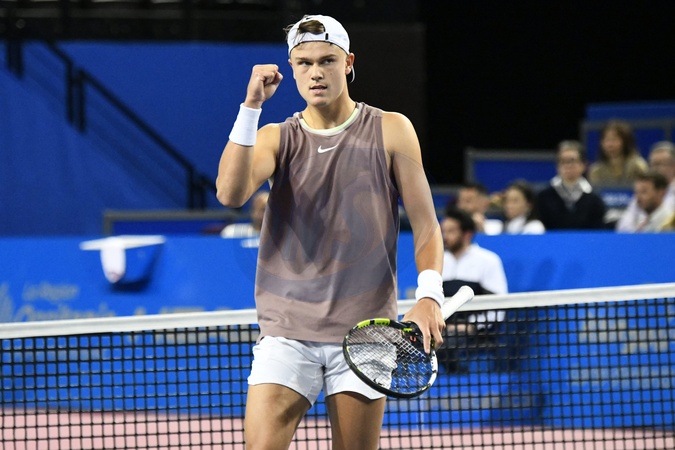 Tournoi de tennis Open Sud de France à Montpellier le 2 février 2024. © Valentina Claret / Panoramic / Bestimage MONTPELLIER, FRANCE - FEBRUARY 2 : Holger RUNE (DEN) celebration during the 1/4 final of the ATP 250 Open Sud de France tournament vs. Michael MMOH (USA) in Montpellier, France on February 2nd, 2024.
