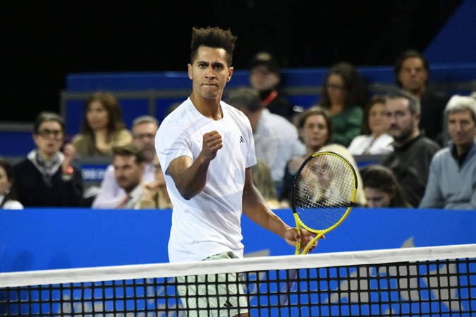Tournoi de tennis Open Sud de France à Montpellier le 2 février 2024. © Valentina Claret / Panoramic / Bestimage MONTPELLIER, FRANCE - FEBRUARY 2 : Michael MMOH (USA) celebration during the 1/4 final of the ATP 250 Open Sud de France tournament vs. Holger RUNE (DEN) in Montpellier, France on February 2nd, 2024.