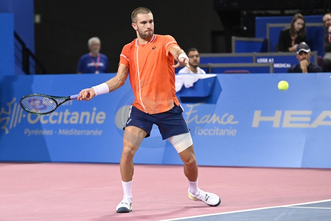Tournoi de tennis Open Sud de France à Montpellier le 2 février 2024. © Valentina Claret / Panoramic / Bestimage MONTPELLIER, FRANCE - FEBRUARY 2 : Borna CORIC (CRO) during the 1/4 final of the ATP 250 Open Sud de France tournament vs. Flavio COBOLLI (ITA) in Montpellier, France on February 2nd, 2024.