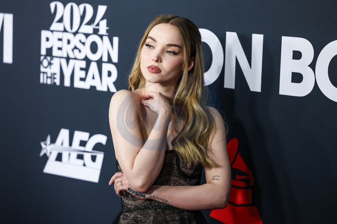 LOS ANGELES, CALIFORNIA, USA - FEBRUARY 02: Dove Cameron arrives at the 2024 MusiCares Person of the Year Honoring Jon Bon Jovi held at the Los Angeles Convention Center on February 2, 2024 in Los Angeles, California, United States., Credit:Xavier Collin / Avalon