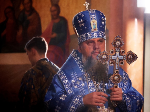 KYIV, UKRAINE - FEBRUARY 2, 2024 - Primate of the Orthodox Church of Ukraine, Metropolitan of Kyiv and All Ukraine His Beatitude Epiphanius holds a crucifix during a divine liturgy at the Dormition Cathedral of the Kyiv-Pechersk Lavra on Candlemas, Kyiv, capital of Ukraine., Credit:Pavlo_Bagmut / Avalon