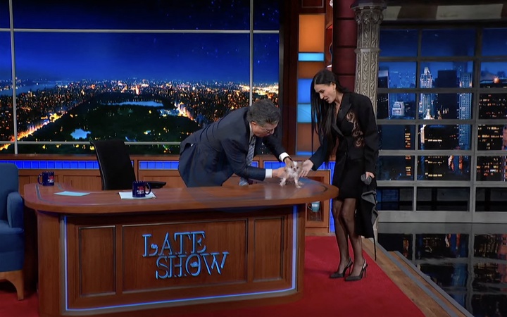Demi Moore montre son minuscule animal de compagnie son Chihuahua au The Late Show