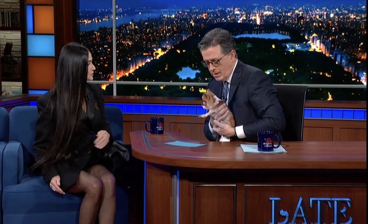 Demi Moore montre son minuscule animal de compagnie son Chihuahua au The Late Show