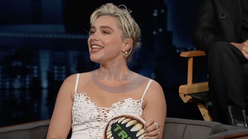 Pictures MUST credit: ABC The cast of new sci-fi sequel Dune : Part Two revealed secrets about themselves in a game of true or false. And it was revealed that 28-year-old British actress Florence Pugh's mother got high with rapper Snoop Dog at the Oscars. And that US starlet Zendaya , 27, had to repeat a year in kindergarten because she got behind on reading and writing. Also Elvis movie heartthrob Austin Butler, 32, got talent scouted at a country fair. Finally Wonka actor Timothee Chalamet , 28, has a rapping alter ego known as Little Timmy True. The game came about on the Jimmy Kimmel US talk show because he wanted to know how much the cast had learned about each other shooting the Dune film, set on a futuristic sand-covered planet. Kimmel explained:” You guys spend a lot of time together I thought maybe we'd play this game.” He handed out paddles with the word "true” on one side and "false” on the other, along with a picture of the jaws of a giant sand worm which appears in the film. Picture supplied by JLPPA