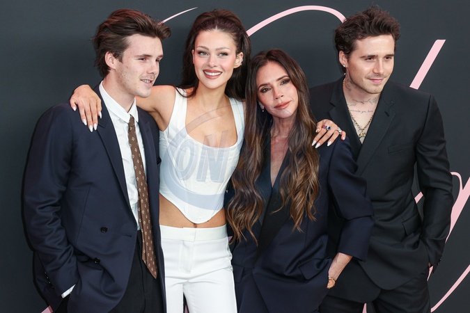 WESTWOOD, LOS ANGELES, CALIFORNIA, USA - FEBRUARY 03: Cruz Beckham, Nicola Peltz Beckham, Victoria Beckham and Brooklyn Peltz Beckham arrive at the Los Angeles Premiere Of Vertical Entertainment's 'Lola' held at the Regency Bruin Theatre on February 3, 2024 in Westwood, Los Angeles, California, United States., Credit:Xavier Collin / Avalon