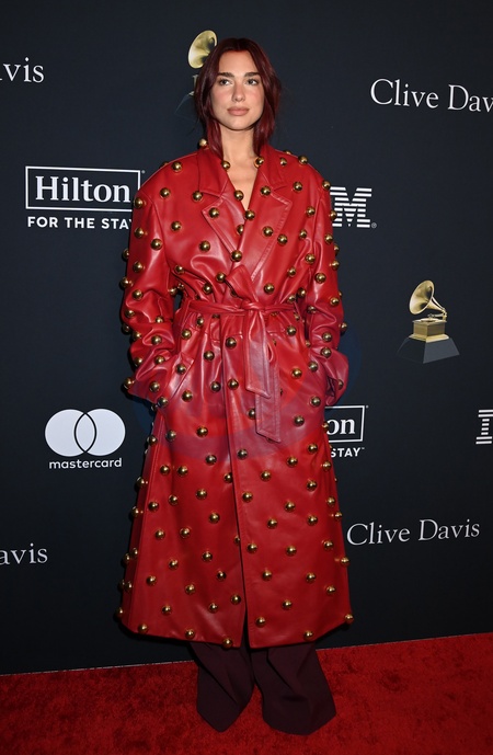 Dua Lipa arriving at the Pre-GRAMMY Gala & GRAMMY Salute To Industry Icons held at the Beverly Hilton Hotel on February 3, 2024 in Beverly Hills, CA.© Tammie Arroyo / AFF-USA.com
