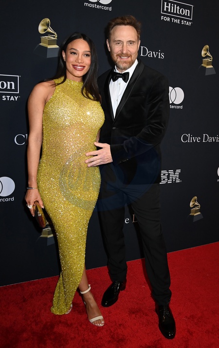 David Guetta and Jessica Ledon arriving at the Pre-GRAMMY Gala & GRAMMY Salute To Industry Icons held at the Beverly Hilton Hotel on February 3, 2024 in Beverly Hills, CA.© Tammie Arroyo / AFF-USA.com