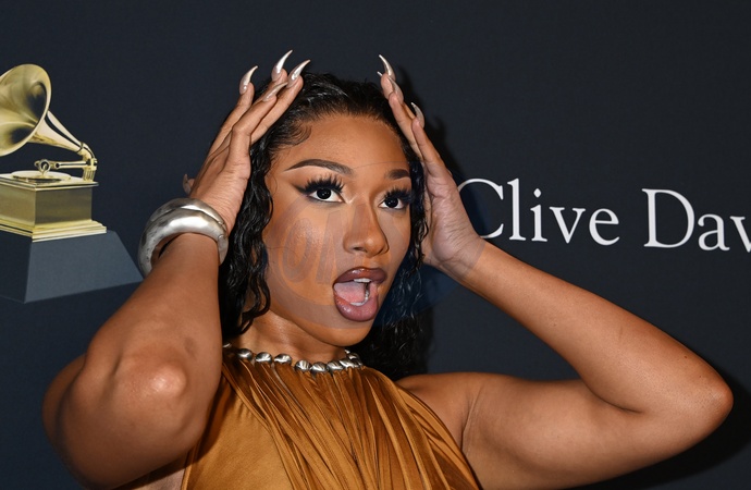 Megan Thee Stallion arriving at the Pre-GRAMMY Gala & GRAMMY Salute To Industry Icons held at the Beverly Hilton Hotel on February 3, 2024 in Beverly Hills, CA.© Tammie Arroyo / AFF-USA.com
