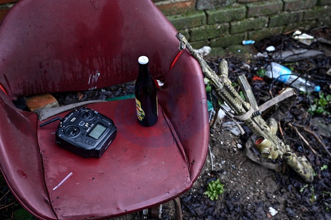 ZAPORIZHZHIA REGION, UKRAINE - JANUARY 27, 2024 - A controller is left in the chair as a police unit of FPV pilots is at work in Zaporizhzhia region, southeastern Ukraine., Credit:Dmytro Smolienko / Avalon