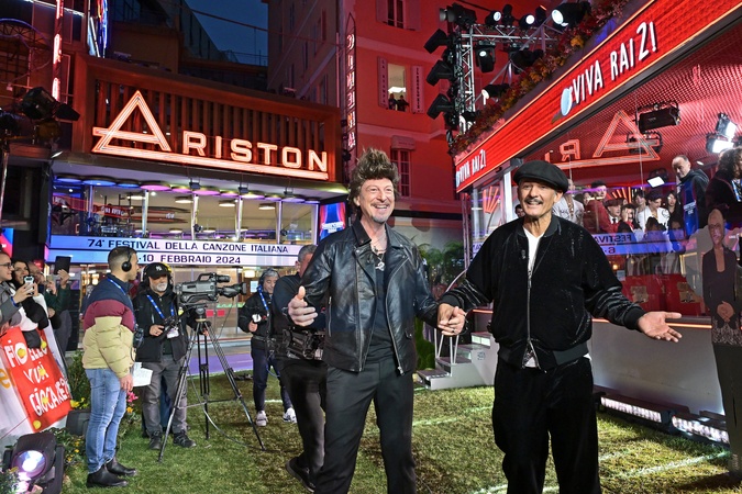 Fiorello and Amadeus in front of Ariston Theater, Credit:Maria Laura Antonelli / Avalon