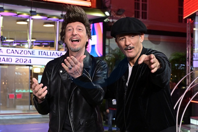 Fiorello and Amadeus in front of Ariston Theater, Credit:Maria Laura Antonelli / Avalon