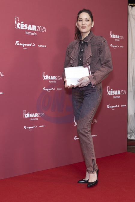 Marion Cotillard au Photocall des participants au dîner des nommés des César 2024 au Fouquet's Paris le 5 février 2024. © Olivier Borde / Bestimage Photocall of participants at the César 2024 nominees' dinner at Fouquet's Paris on 5 February 2024