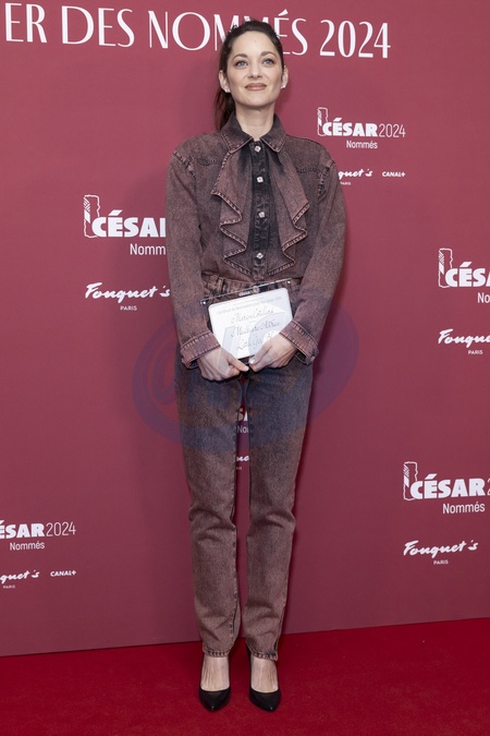 Marion Cotillard au Photocall des participants au dîner des nommés des César 2024 au Fouquet's Paris le 5 février 2024. © Olivier Borde / Bestimage Photocall of participants at the César 2024 nominees' dinner at Fouquet's Paris on 5 February 2024