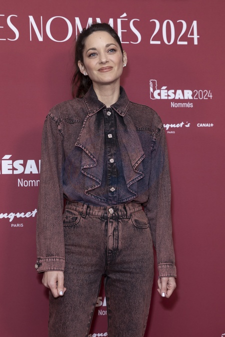 Marion Cotillard au Photocall des participants au dîner des nommés des César 2024 au Fouquet's Paris le 5 février 2024. © Olivier Borde / Bestimage Photocall of participants at the César 2024 nominees' dinner at Fouquet's Paris on 5 February 2024